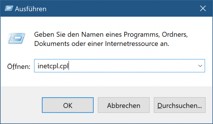 - Geben Sie anschlieĂźend inetcpl.cpl ein und klicken Sie auf "OK".