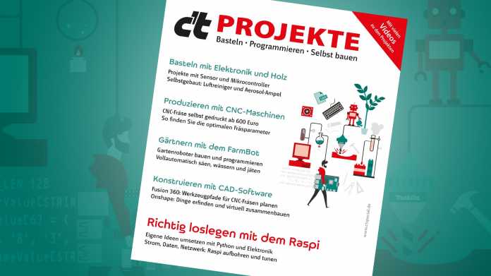 Alle Artikel zum FarmBot, von der ersten Planung bis zum fertigen Roboter, finden Sie im aktuellen Sonderheft c’t Projekte – zusammen mit Tipps und Ideen für den Raspberry Pi, Elektronikprojekte mit Sensoren und Grundwissen zum Einstieg ins CNC-Fräsen.