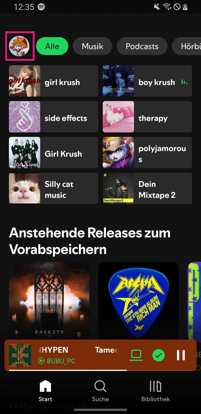 - Öffnen Sie in der Spotify-App die Einstellungen, indem Sie oben rechts auf Ihr Profilbild tippen und dann "Einstellungen und Datenschutz" wählen.