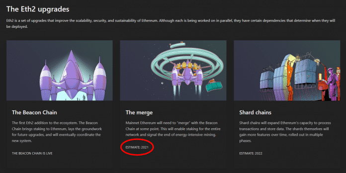 Die Ethereum Foundation hat die öffentliche ETH-2.0-Roadmap, die den Weg zur Umstellung auf Proof of Stake (PoS) beschreibt, erneut angepasst: Stand dort im September noch das Jahr 2021 für den sogenannten Merge, also der Verschmelzung des Mainnets mit der Testplattform (Beacon-Chain), ist jetzt wieder 2022 vermerkt. Das entspricht der Planung von Anfang 2021, bevor die Ethereum Foundation die Daten unter anderem aufgrund von politischem Druck geändert hatte.