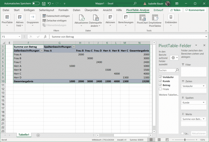 Am einfachsten ist es, wenn Sie die gesamte Pivot-Tabelle in Excel markieren und diese dann kopieren. Folgen Sie unserer Schritt-fĂĽr-Schritt-Anleitung oder schauen Sie sich die Kurzanleitung an.
