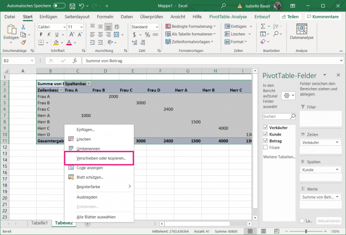 Excel Pivot-Tabelle kopieren (4 Bilder)