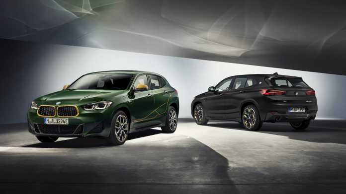 Ebenfalls ab MĂ€rz gibt es eine Sonderedition des Kompakt-SUV X2, das BMW vollmundig "Sports Activity CoupĂ©" nennt. Die nicht limitierte "GoldPlay"-Edition ist fĂŒr alle Motorisierungen erhĂ€ltlich - auch fĂŒr den Plug-in-Hybrid X2 25e. Sie zeichnet sich in erster Linie durch eine grĂŒne Lackierung, ein M-Sportpaket und, Wem-auch-immer sei Dank, abwĂ€hlbare, goldene Details wie Nierenrahmen und Spiegelkappen aus.