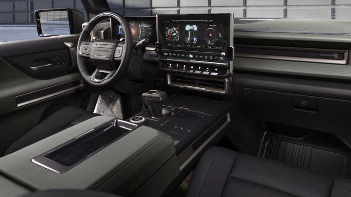 Dafür verbaut General Motors allerlei Zutaten. Zu ihnen gehört die Allradlenkung, mit der das Fünf-Meter-SUV einen Wendekreis von 10,8 m hat. Für den harten Geländeeinsatz gibt es nicht nur Trailmapping im Fahrzeug und per App, sondern auch eine adaptive Luftfederung und 22-Zoll-Räder mit grobstolligen Reifen. Auf Wunsch wird das Offroadpaket um einen Unterschutz, Unterbodenkameras mit integrierter Waschanlage erweitert. GM verspricht, dass der so gerüstete Hummer Steigungen mit 60 Prozent packt. Die Wattiefe soll bei rund einem Meter liegen. Wie oft solche Fähigkeiten vom Besitzer ausgeschöpft werden, wissen wir natürlich nicht. Der Hummer verspricht jedoch, in dieser Hinsicht keiner der üblichen Blender zu sein.