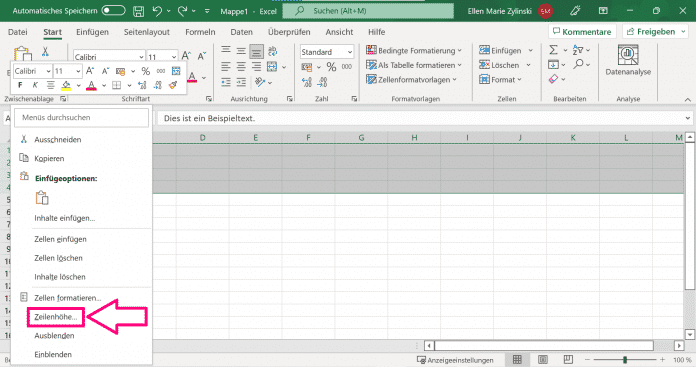 - Nun können Sie einen Wert für die Zeilenhöhe eingeben. Anschließend passt sich die Zeilenhöhe automatisch an.