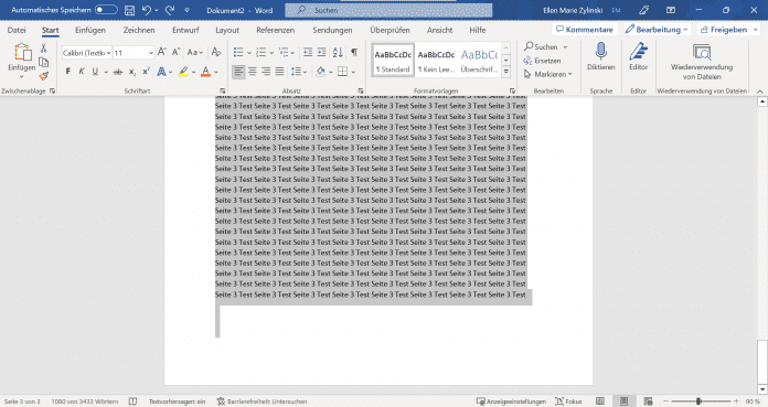 Seiten bei Word durch Ausschneiden verschieben (2 Bilder)