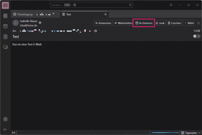 Als Alternative zur lokalen Speicherung Ihrer wichtigsten Thunderbird E-Mails können Sie die Nachrichten auch archivieren. Dabei werden die Mails nicht als Datei auf Ihrem Computer gespeichert, sondern verbleiben sicher in einem Ordner auf dem Server Ihres E-Mail-Providers. Sie müssen die E-Mails also nicht umständlich auf einem Speichermedium wie z.B. einer externen Festplatte oder einem USB-Stick sichern, sondern verschieben die einzelnen E-Mails einfach in den Archiv-Ordner. Allerdings richtet sich die Zahl der zu speichernden E-Mails dabei nach der angebotenen Kapazität des Mail-Anbieters. Diese finden Sie meist in den Konten-Einstellungen des Mail-Providers.