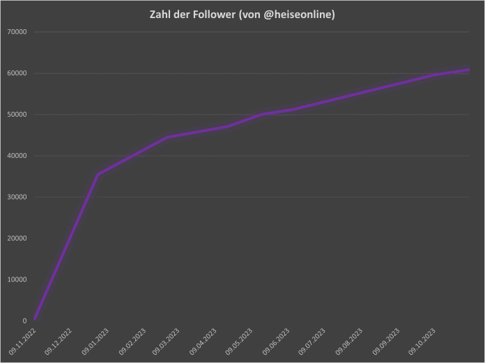 Nach der Inbetriebnahme des Accounts ist nicht nur die Zahl der Follower massiv und schnell gestiegen, das Interesse an den Beiträgen wuchs ebenfalls rasch. Zweieinhalb Monate später ist der Account dann auf die hauseigene Instanz social.heise.de umgezogen, wo nicht nur weitere hauseigene Medien wie das c't Magazin und heise Security ein Zuhause im Fediverse bekommen haben: Auch Redakteure und Redakteurinnen sowie andere Angestellte haben sich hier Accounts eingerichtet. Inzwischen kommt @heiseonline@social.heise.de auf 61.000 Follower und über 12.000 Beiträge. Trotzdem bleibt der Abstand zu X/Twitter groß, der dort seit April 2007 bestehende Accounts hat mehr als 240.000 Follower.