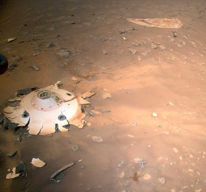 Ingenuity: Fotos des "Trümmerfelds" mit Fallschirm und Abdeckung (11 Bilder)