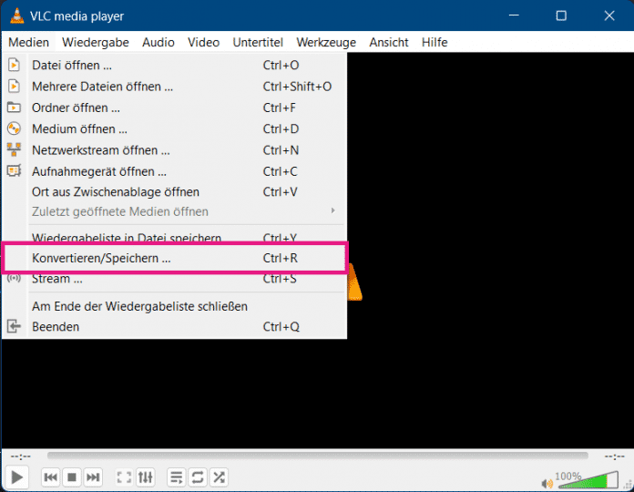 - Starten Sie den VLC Media Player, klicken Sie oben links auf "Medien" und dann auf "Konvertieren/Speichern".