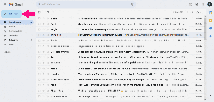 - Nachdem Sie sich beim E-Mail-Dienst von Google eingeloggt haben, klicken Sie auf "Schreiben".