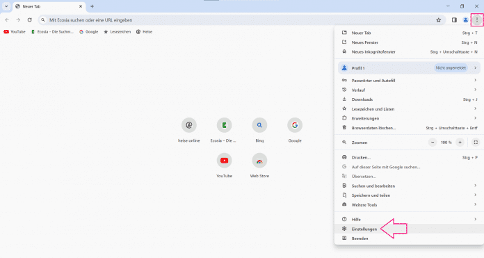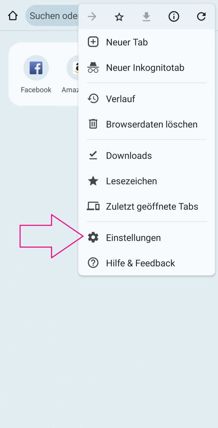 - Tippen Sie auf das Drei-Punkte-MenĂĽ und dann auf "Einstellungen".