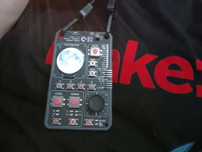Für Berlin wurde dieses Mal der Badge der "Hackaday Superconference" 2023 wiederverwendet. Der Badge auf Basis des Raspberry Pico bietet mit ihren runden Display, Knöpfen und einem 4-Wege-Joysticks, I2C, Lautsprecher und Stromversorgung mit 2xAAA eine gute Platform für Experimente. Das runde Display und die (vier) analogen Eingänge boten geradezu eine Steilvorlage, ein Oszilloskop nachzubilden. So dient dann auf dem Badge auch ein Kern des RP2040 dazu, die Signale darzustellen und der andere Kern bildet einen Signalgenerator, mit dem man die faszinierenden Lissajous-Figuren erzeugen kann. Der erste Hack war dann mittels Jumperkabeln die Ausgänge des Signalgenerators mit den Eingängen des Oszilloskops zu verbinden: Aber das haben auch Dokumentationsmuffel wie ich schnell bei anderen abgeschaut.