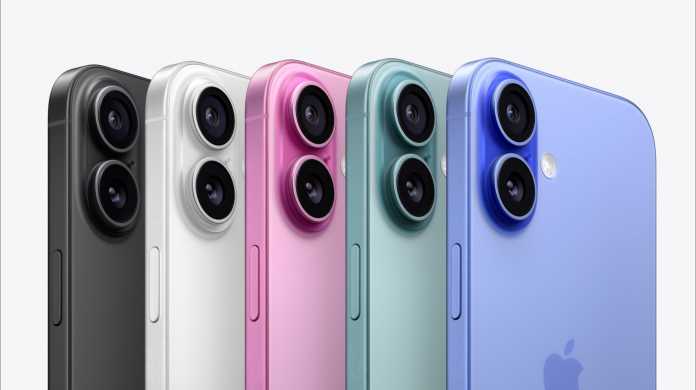 Statt in Gelb, Pink, Grün und Schwarz gibt es das iPhone 16/16 Plus in den Farben Blaugrün, Pink, Ultramarin, Schwarz und Weiß. Bei den Pro-Modellen bleibt es bei Titan Weiß, Titan Natur und einem tieferen Titan Schwarz. Titan Wüstensand löst Titan Blau ab.