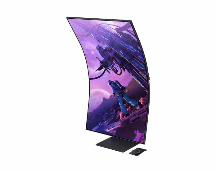 Mit einer dynamischen Bildwiederholrate von bis zu 165 Hertz und einer typischen Reaktionszeit von einer Millisekunde soll der Odyssey Ark flotter sein als praktisch alle normalen Smart-TVs. Während Samsung keine neuen gebogenen Fernseher mehr produziert, ist der Odyssey Ark in einem engen 1000R-Radius gekrümmt. So soll sich das Display wie ein normal großer PC-Monitor auf einem Schreibtisch verwenden lassen – wir empfehlen trotzdem einen hohen Sitzabstand, um keine Nackenschmerzen zu riskieren.