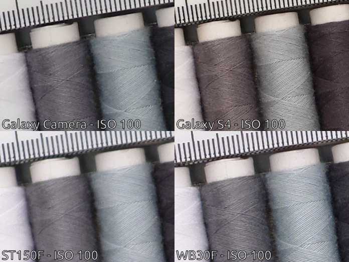Auch bei den Tests der Makro-Eigenschaften liegen die beiden Kompaktkameras klar vorn. Die kleinstmögliche mit dem S4 fotografierbare Fläche misst 5,8 × 4,3 cm, allerdings muss dazu bereits manuell ein Fokuspunkt gesetzt und die rot warnende Farbe des Fokusfeldes ignoriert werden. Die ST150F nimmt ohne besondere Eingriffe eine minmale Fläche von 4,4 × 3,3 cm auf, kann ein Motiv also nahezu doppelt so groß abbilden wie das S4. Die Makroleistungen der WB30F sind kaum schwächer, hier misst die kleinstmögliche Motivfläche 4,5 × 3,4 cm.