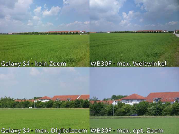 Den im Vergleich zum Smartphone größten Vorsprung arbeiten die beiden Kompakten durch ihr optisches Zoom heraus. Mit Kleinbildbrennweiten von 25 bis 125 mm (ST150F) und 24 bis 240 mm (WB30F) eröffnen beide Kameras wesentlich größere Möglichkeiten zur Bildgestaltung als das Galaxy S4 mit seiner festen Brennweite von 31mm.