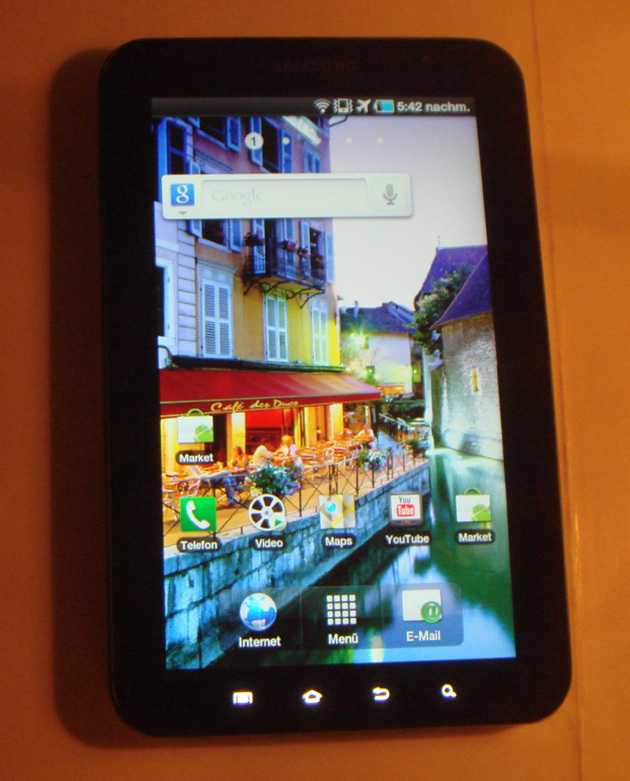 Viele Fakten über Samsungs Android-Tablet Galaxy Tab waren schon vor der IFA bekannt, trotzdem gab es bei der heutigen Vorstellung noch einige Überraschungen: Im 7 Zoll großen Gerät steckt ein vollwertiges Mobiltelefon, man könnte es also auch als Riesen-Smartphone bezeichnen. Damit erfüllt es Googles Kriterien für den Zugriff auf den Android Market – Nutzer können also bequem eine riesige App-Auswahl anzapfen, anders als bei den meisten bisherigen Android-Tablets.