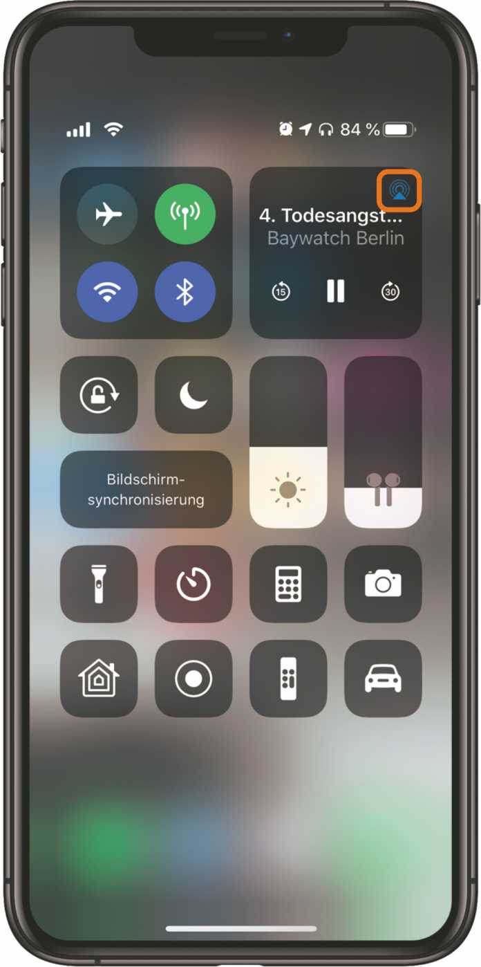 Verbinden Sie zunächst Ihren Kopfhörer oder das Ohrhörerpaar mit Ihrem iOS-Gerät, andernfalls taucht die Option nicht auf. Rufen Sie nun das iOS-Kontrollzentrum auf (bei neueren Geräten, indem Sie mit dem Finger von rechts oben nach unten wischen, bei älteren durch einen Wisch von unten nach oben).