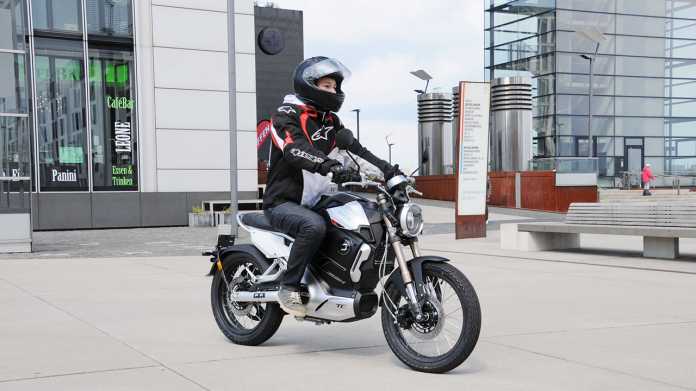 Die chinesische Marke Supersoco – bislang für ihre Elektro-Roller bekannt – hat deshalb die TCmax entworfen. Sie präsentiert sich als Naked Bike mit tankförmiger Batteriehaube und breitem Lenker. Die Batterie liefert Strom für rund 100 Kilometer Reichweite, wenn man sich vorwiegend in der Stadt bewegt. Für das Leichtkraftrad TCmax genügt der "125er-Führerschein" A1 oder die Erweiterung des Autoführerscheins B196. Wir haben uns das schicke Elektromotorrad für einen Test ausgeliehen.