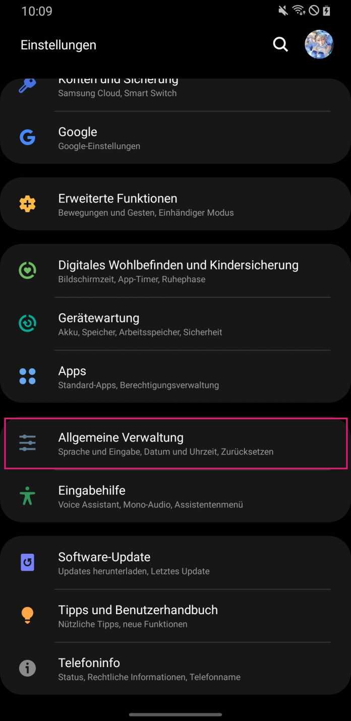 - In den Smartphone-Einstellungen öffnen Sie "Allgemeine Verwaltung".