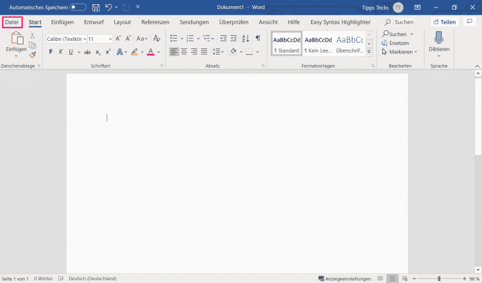 Hinweis: Diese Einstellung können Sie nicht nur in Microsoft Word, sondern auch in Powerpoint vornehmen.