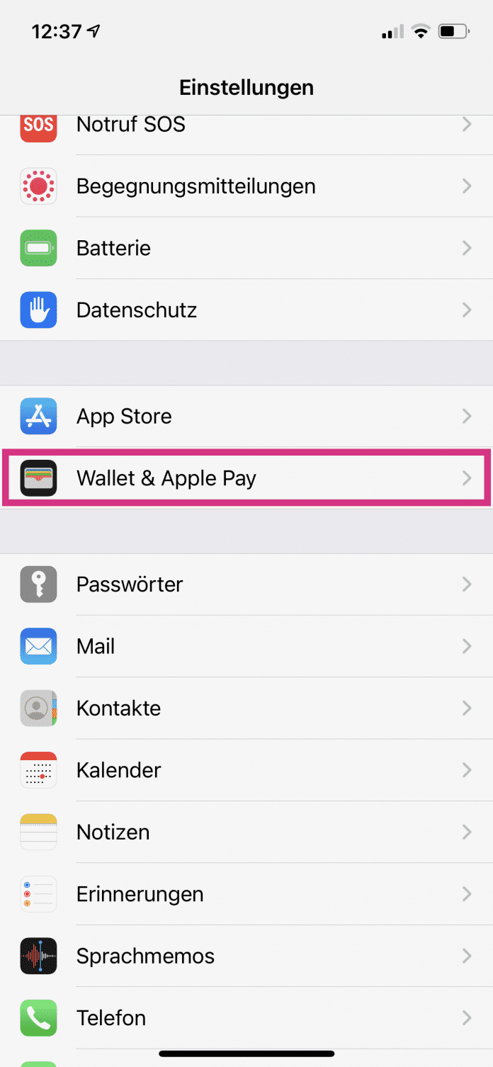 - Öffnen Sie die Einstellungen und starten Sie die Einrichtung von Apple Pay.