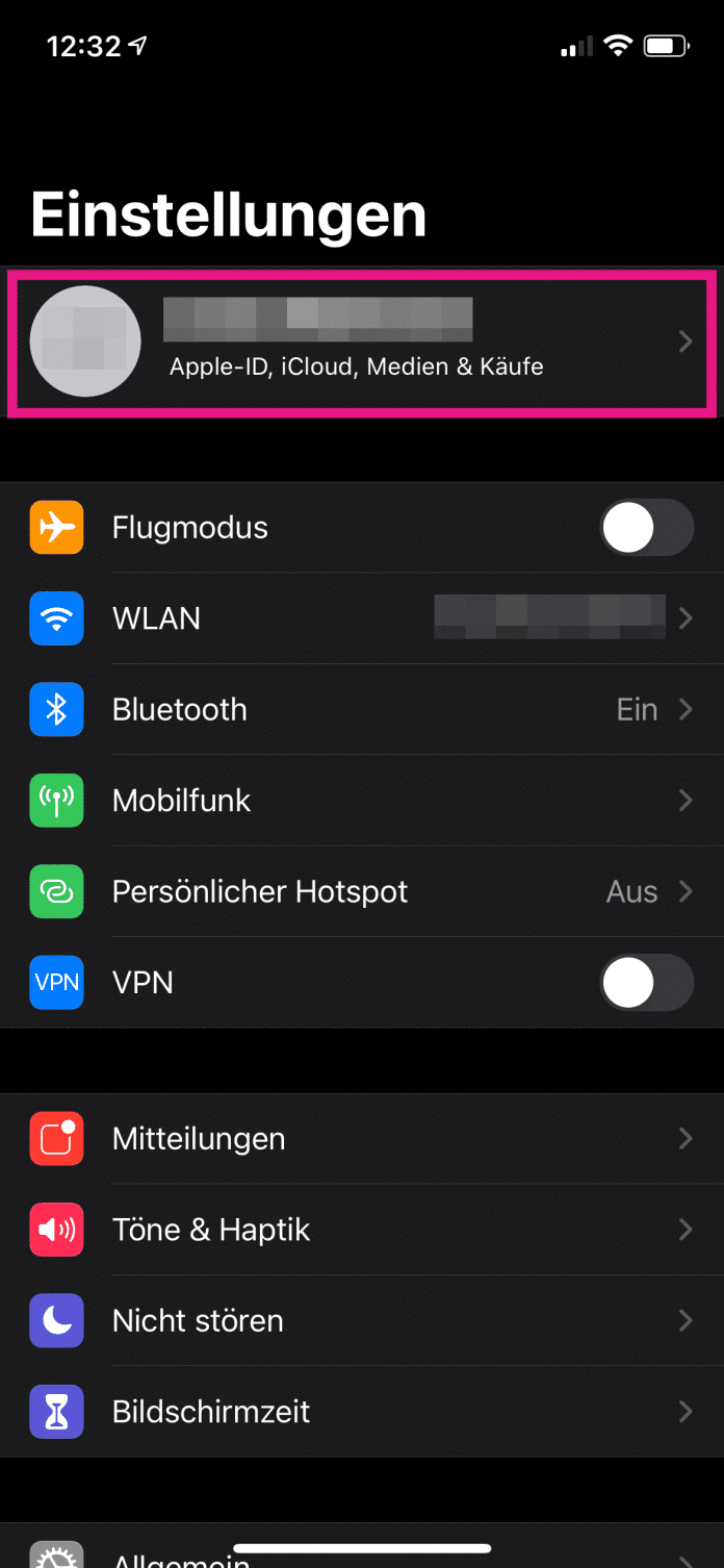 - Tippen Sie in den iPhone-Einstellungen oben auf Ihren Namen.