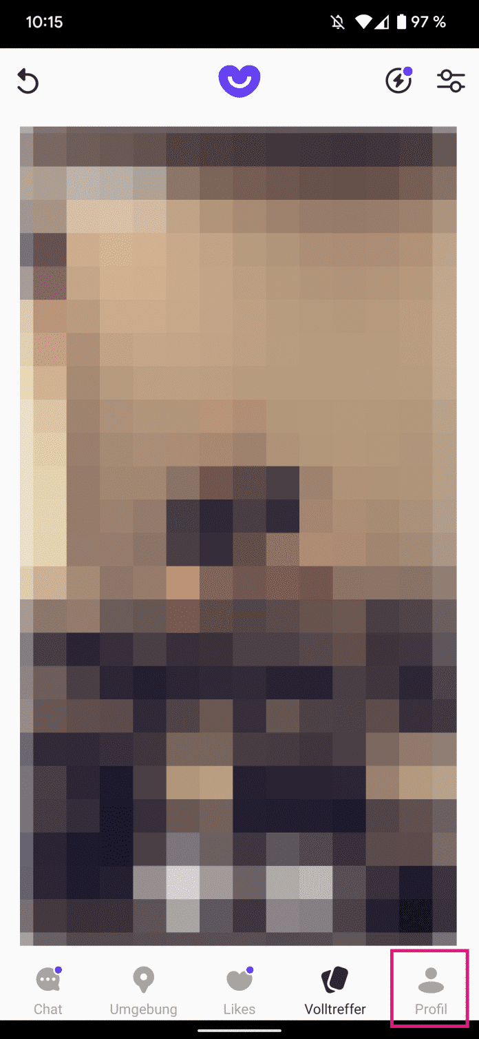 - Ă–ffnen Sie die Badoo-App auf Ihrem Smartphone und tippen Sie dort auf das ganz rechte Symbol in der Bildschirmleiste unten, um zu Ihrem Profil zu gelangen.