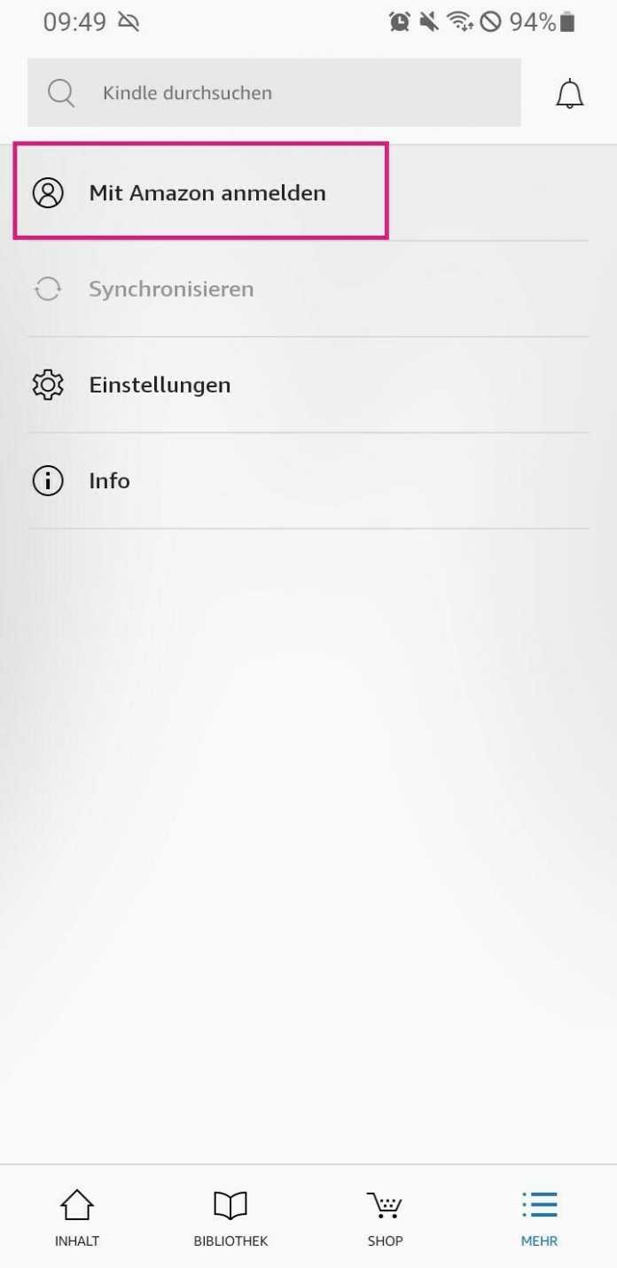 - Ă–ffnen Sie die Kindle-App auf Ihrem Smartphone und stellen Sie sicher, dass Sie dort mit Ihrem Amazon-Konto angemeldet sind. Es ist wichtig, dass Sie sich hier mit dem gleichen Account anmelden, der auch mit Ihrem Kindle verbunden ist.