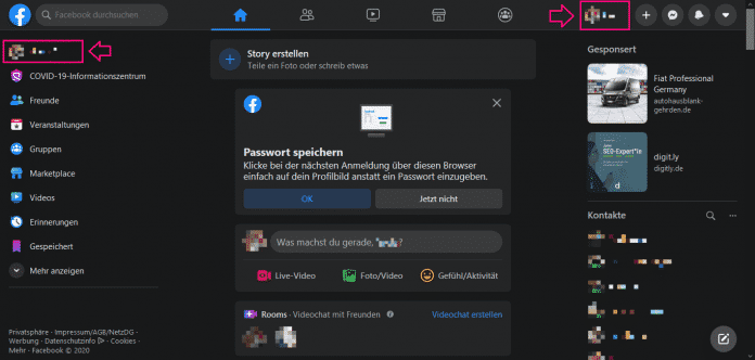 - Ă–ffnen Sie Facebook im Browser und klicken Sie oben auf Ihr Profil.