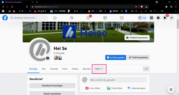- Gehen Sie in Ihr Profil und klicken Sie oben in der MenĂĽleiste auf "Mehr".