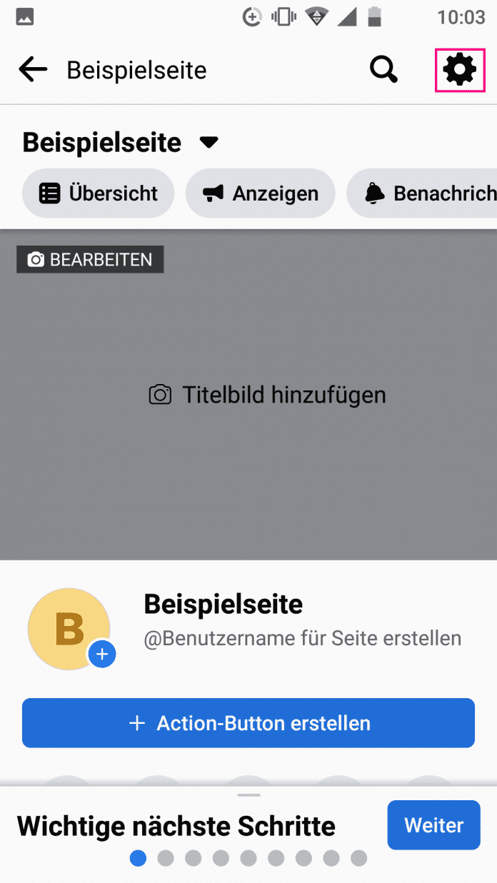 - Tippen Sie dann oben rechts auf das Zahnrad-Symbol.