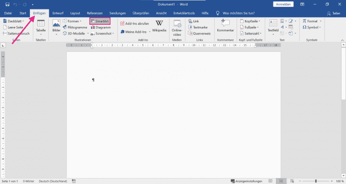 - Unter "EinfĂĽgen" klicken Sie zuerst auf "SmartArt".