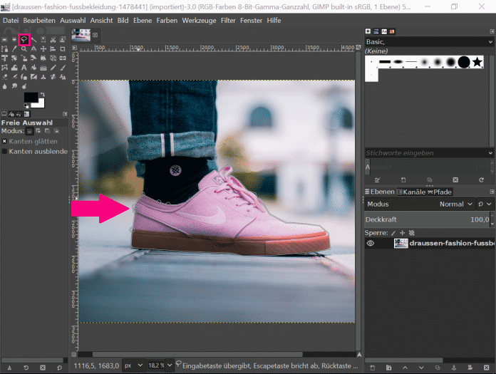 Der Schwarz-Weiß-Look hat sich längst zur Verschönerung von Fotos etabliert. Fehlende Farben sehen nicht nur schick aus, Sie lassen auch Kontraste besser zur Geltung kommen. Mit Hilfe des kostenfreien Fotobearbeitungsprogramms GIMP können Sie solche Effekte für Ihre eigenen Schnappschnüsse erzeugen und abwandeln. Wir zeigen Ihnen, wie Sie zum Beispiel ein Foto mit bunten Sneakers so bearbeiten können, dass nur die Schuhe ihre Farbe behalten.