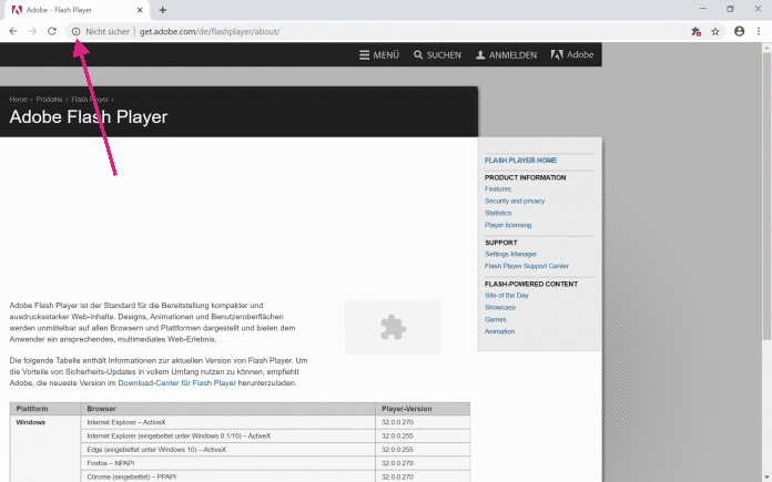 Hinweis: Ab der Version Chrome 76 ist der Flash Player standardmäßig deaktiviert. Auch Adobe verabschiedet sich bis Ende 2020 endgültig vom Flash-Player.