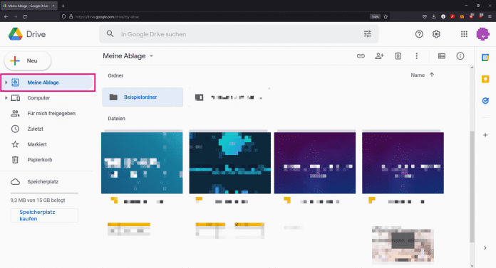 - Öffnen Sie Google Drive in Ihrem Webbrowser und melden Sie sich mit Ihrem Google-Konto an. Unter "Meine Ablage" suchen Sie die Datei oder den Ordner, den Sie auf Ihrem Rechner wiederherstellen möchten.