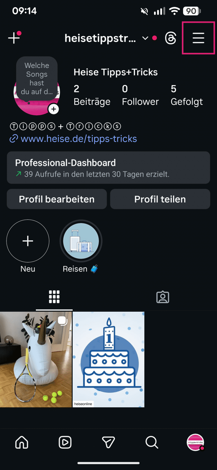 - Ă–ffnen Sie in der Instagram-App Ihr Profil.