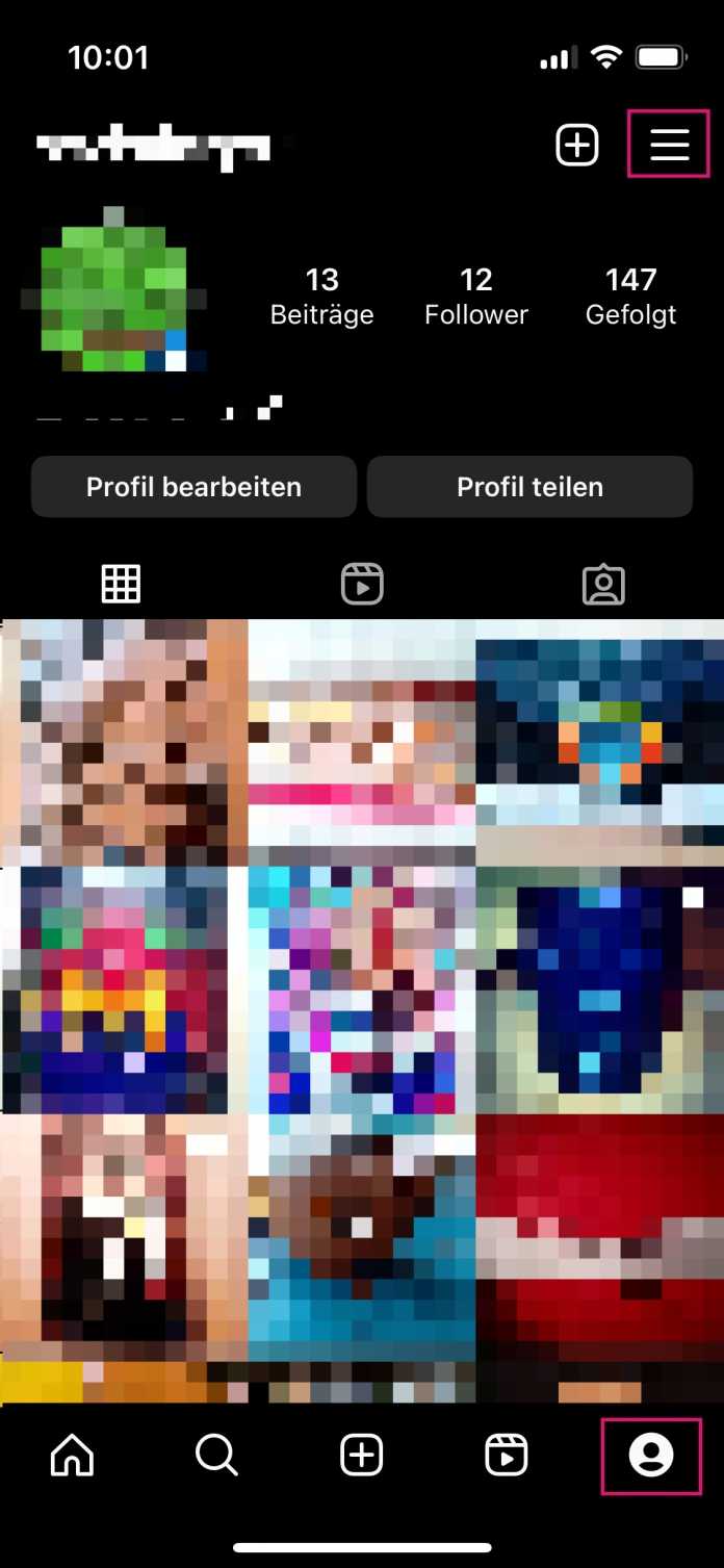 - Navigieren Sie in der Instagram-App zu Ihrem Profil und öffnen Sie dort oben rechts das Burger-Menü.