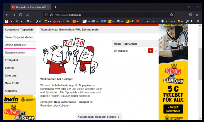 - Klicken Sie in der MenĂĽleiste unter "Kostenlose Tippspiele" auf "Offene Tippspiele".