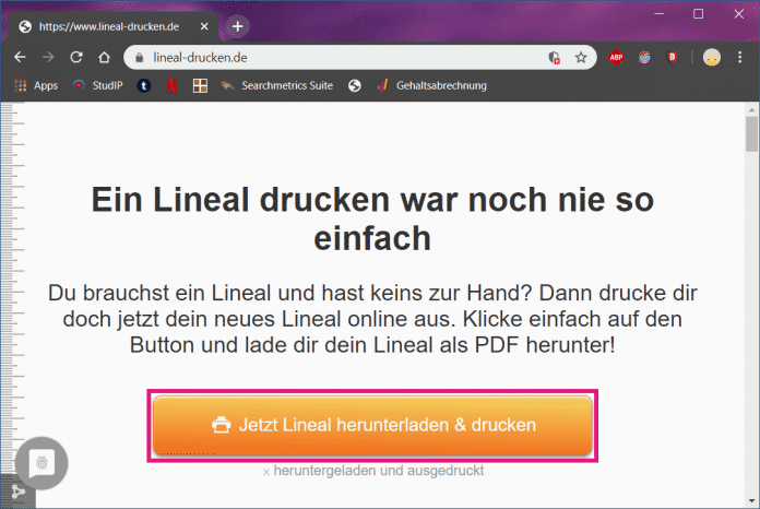 - Verwenden Sie zum Drucken des Lineals dickeres Papier, damit dieses stabiler ist. Besuchen Sie dann die Webseite lineal-ausdrucken.de und klicken Sie dort auf den Button "Jetzt Lineal herunterladen und drucken".