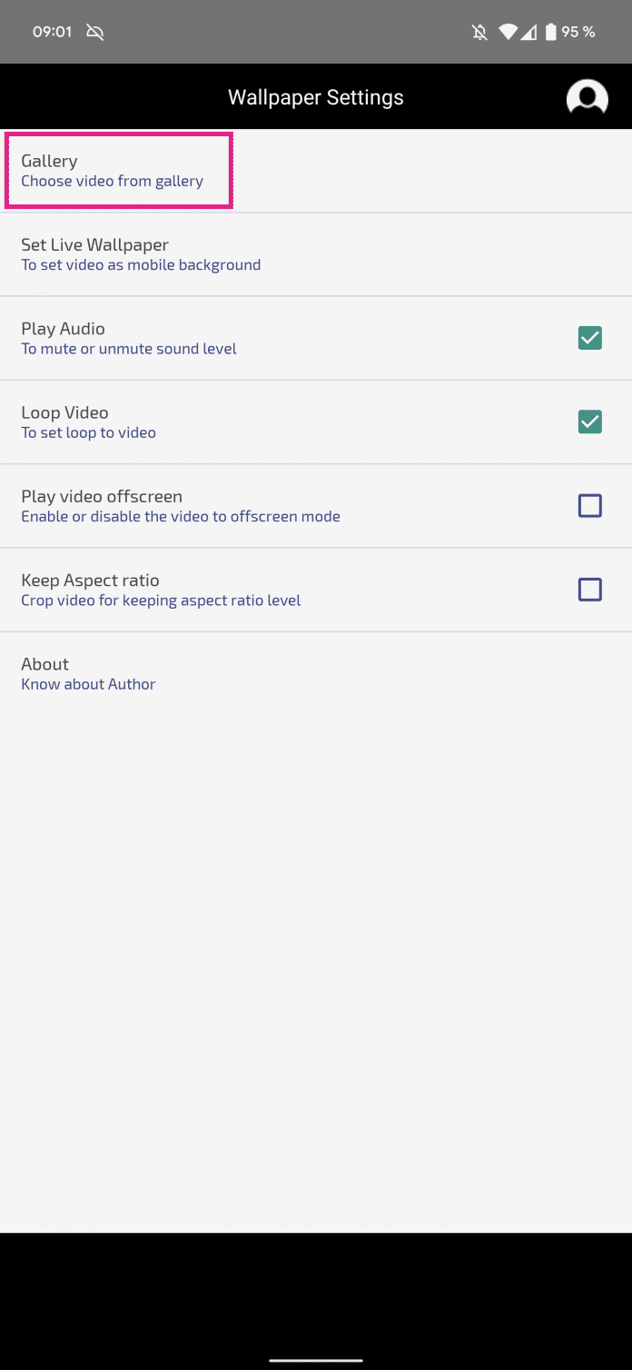 - Ă–ffnen Sie nach der Installation die App Video Live Wallpaper und tippen Sie dort auf "Gallery".