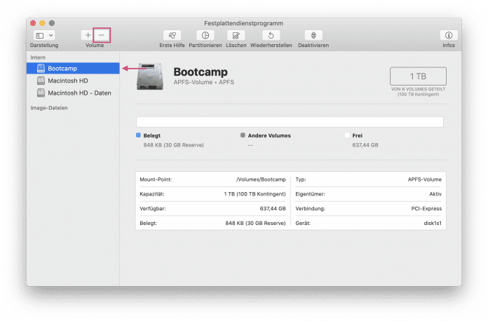 Mac APFS-Volume hinzufĂĽgen (4 Bilder)
