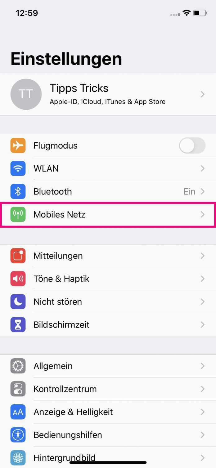 Mobile Daten aktivieren und deaktivieren (4 Bilder)