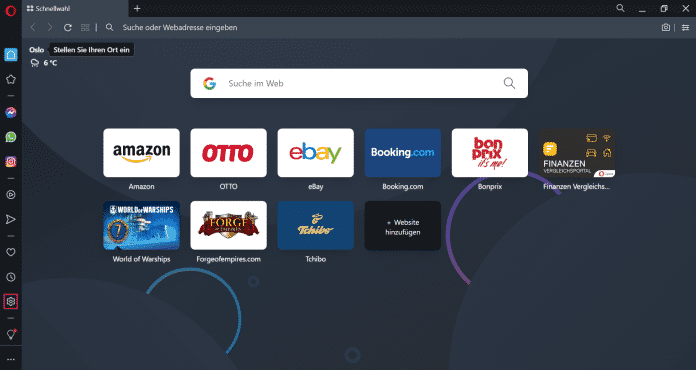 - Öffnen Sie den Opera-Browser und klicken Sie auf das Zahnrad-Symbol "Einstellungen".