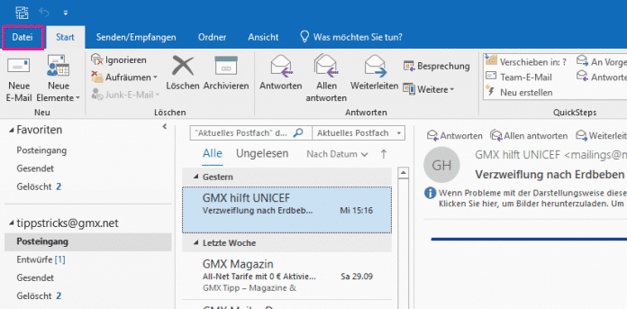 - Klicken Sie auf "Datei" > "Ă–ffnen und Exportieren" > "Importieren/Exportieren".