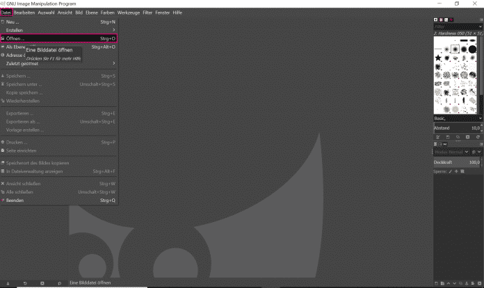 - Ă–ffnen Sie das Bild mit [Strg] + [O].