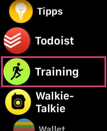 - Öffnen Sie die App „Training" auf Ihrer Apple Watch.