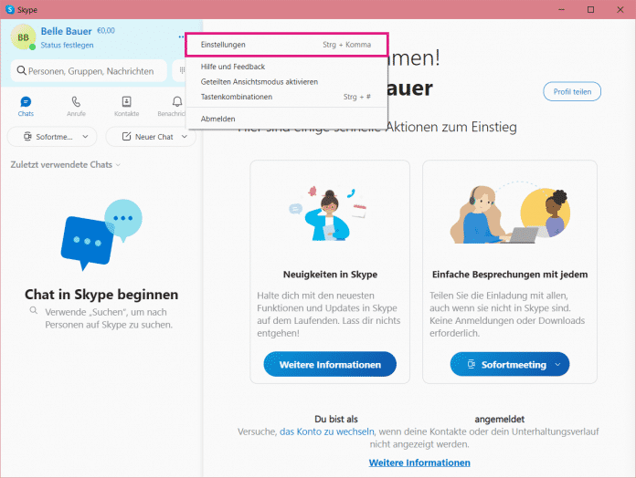 Wenn das Problem trotz Neuinstallation weiterhin besteht, versuchen Sie vorübergehend den Web-Client von Skype zu verwenden und melden Sie das Problem dem Skype-Support. Wie genau Sie Skype im Browser verwenden, können Sie in diesem Beitrag nachlesen.