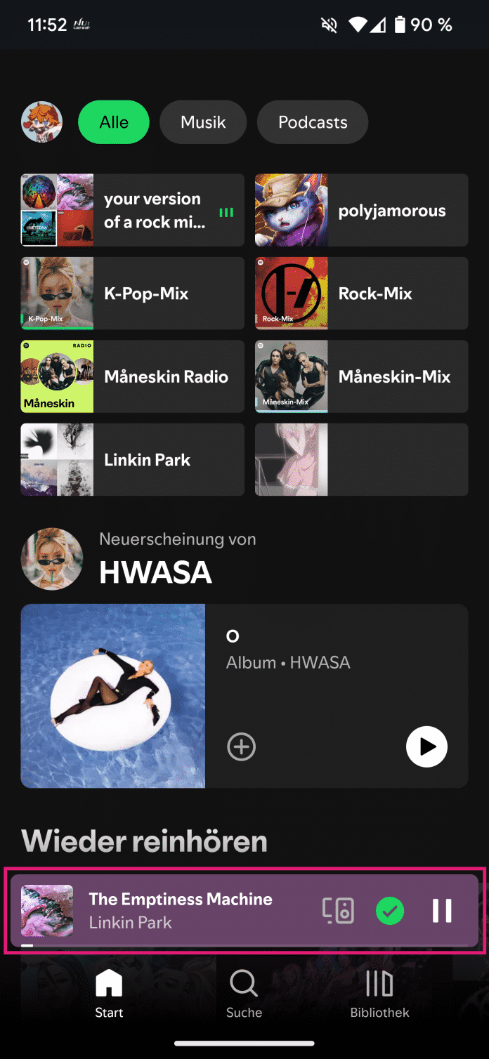 - Die Jam-Ansicht können Sie erneut öffnen, indem Sie auf die Wiedergabe am unteren Bildschirmrand tippen und dann unten rechts das Symbol für die Warteschlange auswählen.